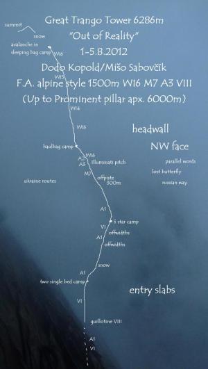 این گروه ، دومین گروهی هستد که تا کنون موفق به صعود این قله شده اند . آنها مسیر جدید 1270 متری خود را Keep Panic, Please نامیده اند و در طول مسیر صرفا از چند رول برای تقویت کارگاها استفاده کرده اند .